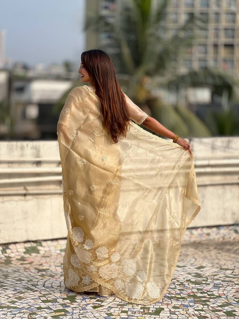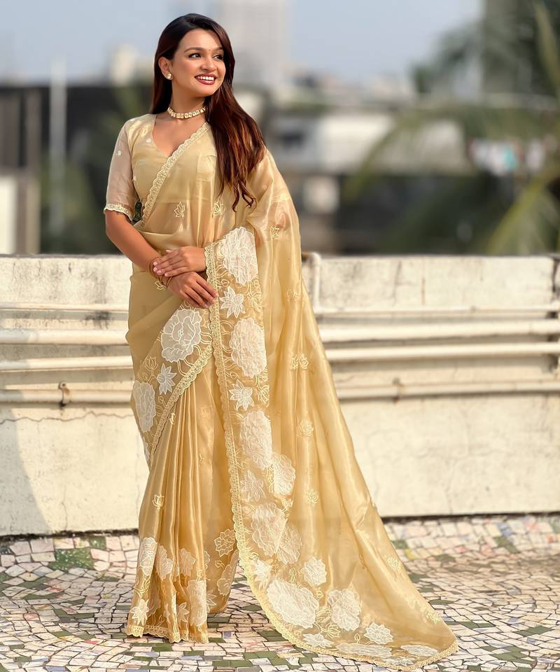 | Product Name | Yellow Color Oris Silk Fabric Lotus Embroidered Beautiful Fancy Saree | |
