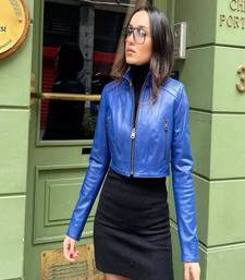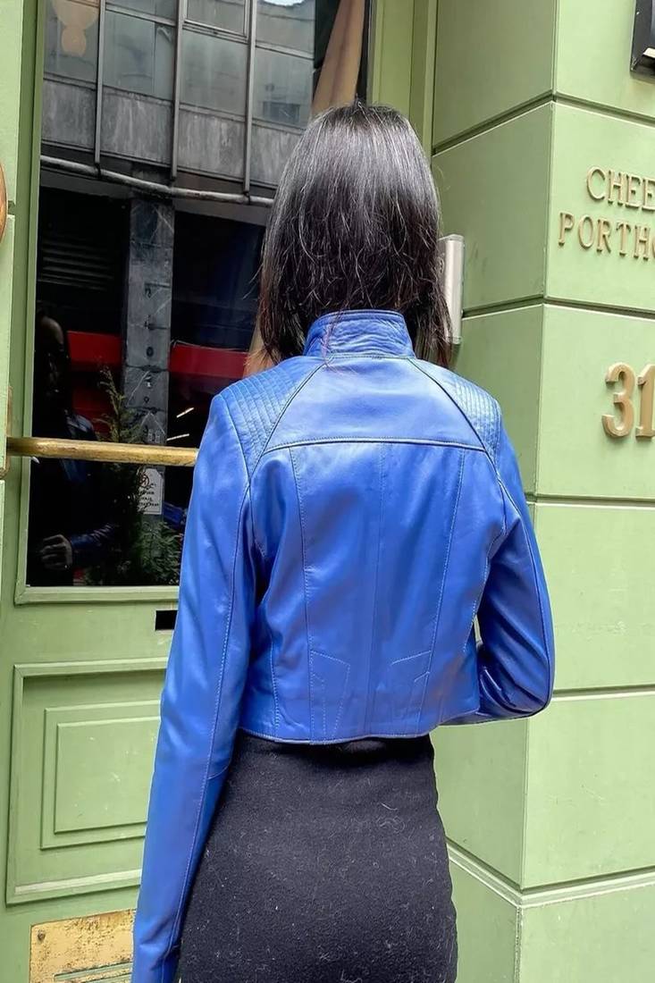 | Product Name | Blue Color Quilted Cropped Genuine Leather Jacket Slim Fit Trucker Style Short | |