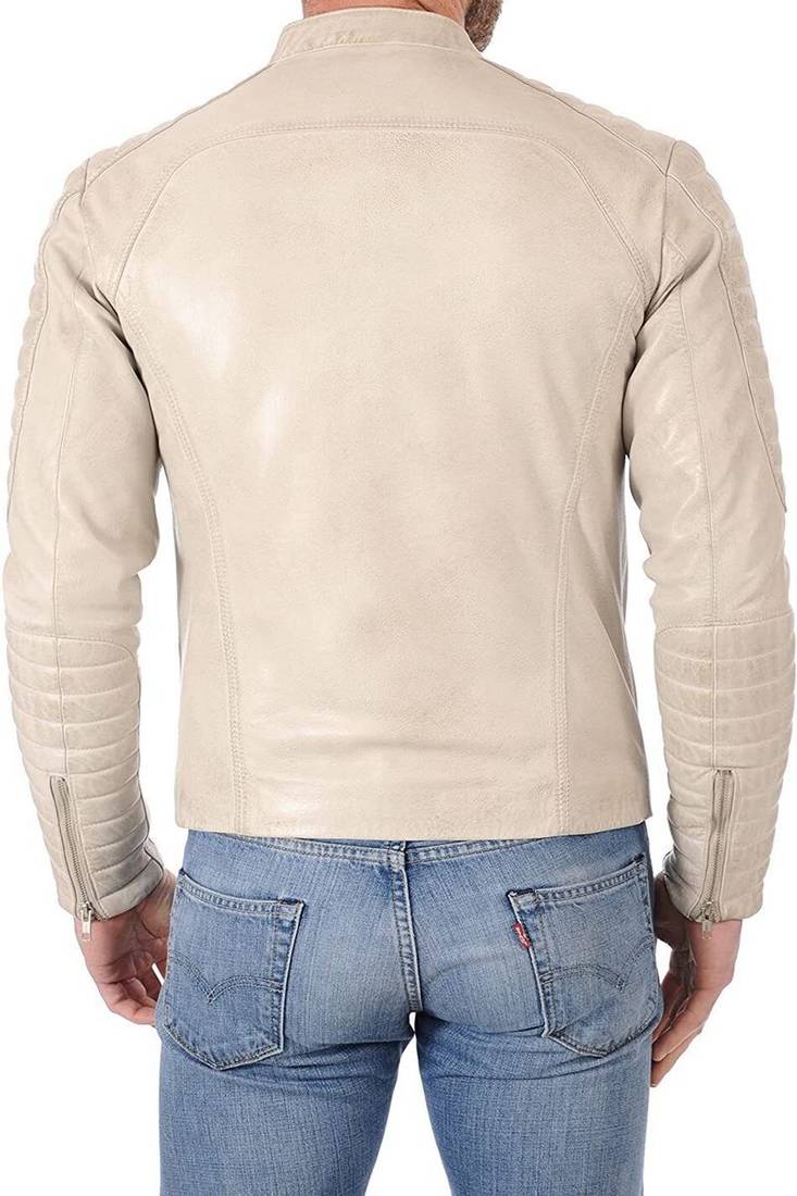 Product Name Creamy White Quilted Genuine Leather Biker Jacket Motorcycle Zipper Jacket