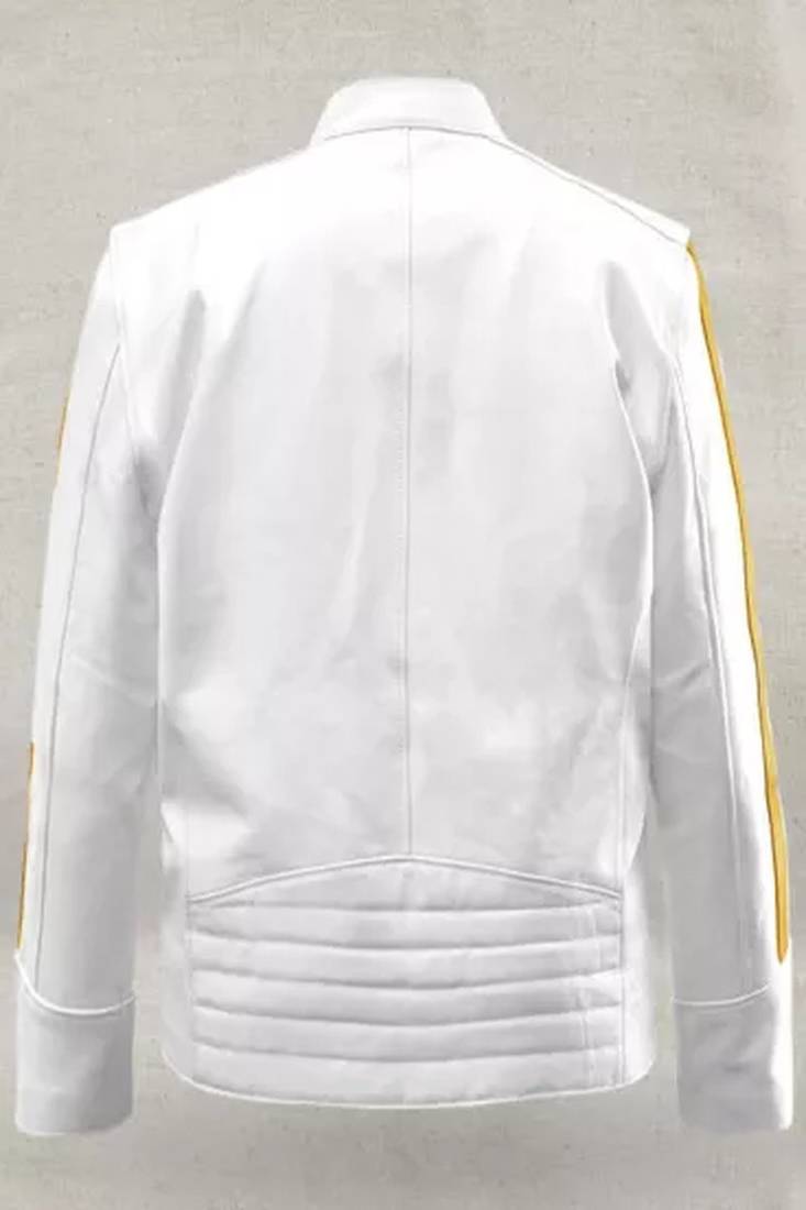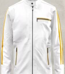 | Product Name | Men's White Lambskin Biker Leather Jacket Slim Fit Zipper Yellow Stripe | |