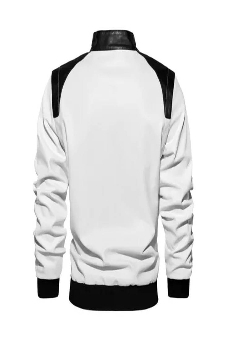 | Product Name | Men's White Lambskin Leather Jacket Slim Fit Moto Style Zipper Black Stripe | |