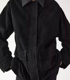 Soft lambskin suede leather jacket long pocket