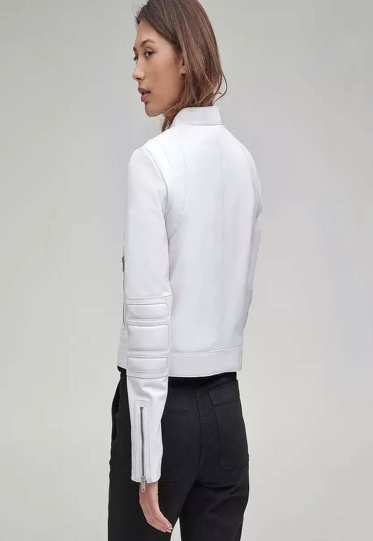 | Product Name | Women’s White Lambskin Leather Jacket Black Motorcycle Biker Stylish Slim Fit | |