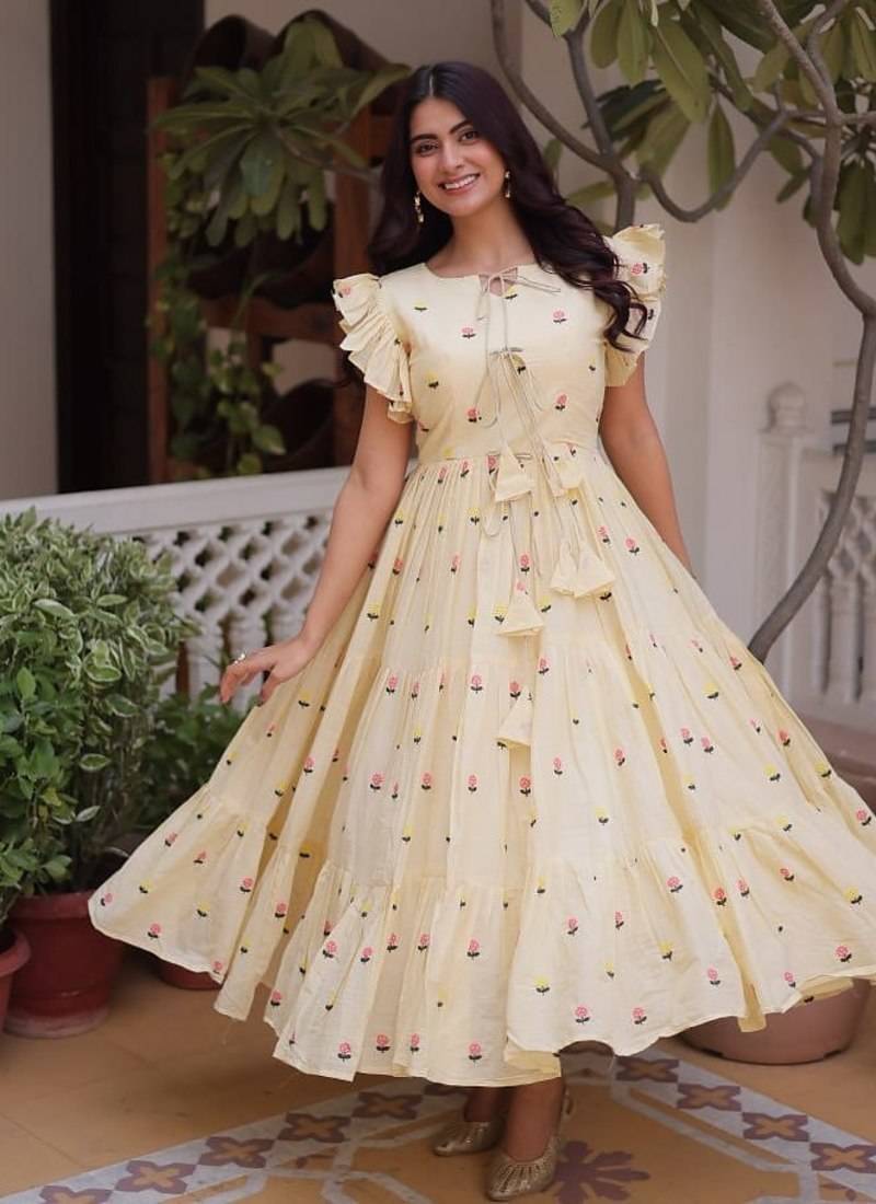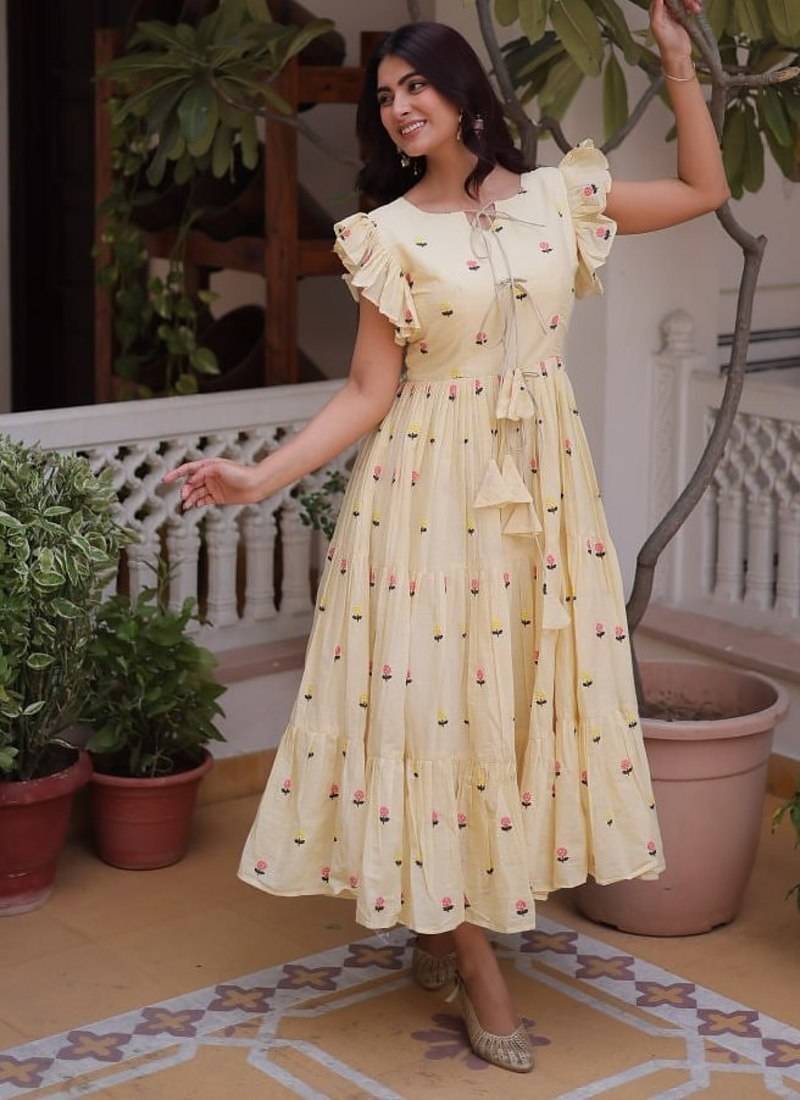 | Product Name | Cream Cotton With Embroidered Work Stitched Kurti For Women | |