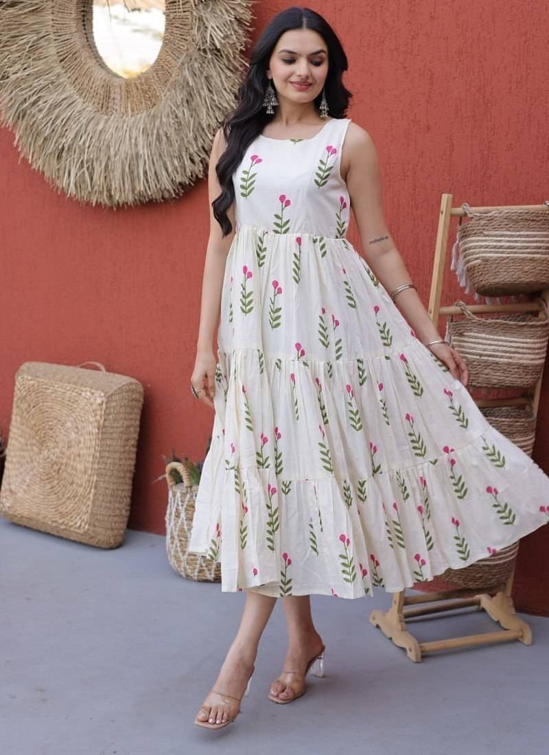 | Product Name | Cream Digital Printed Cotton Stitched Kurti For Women | |
