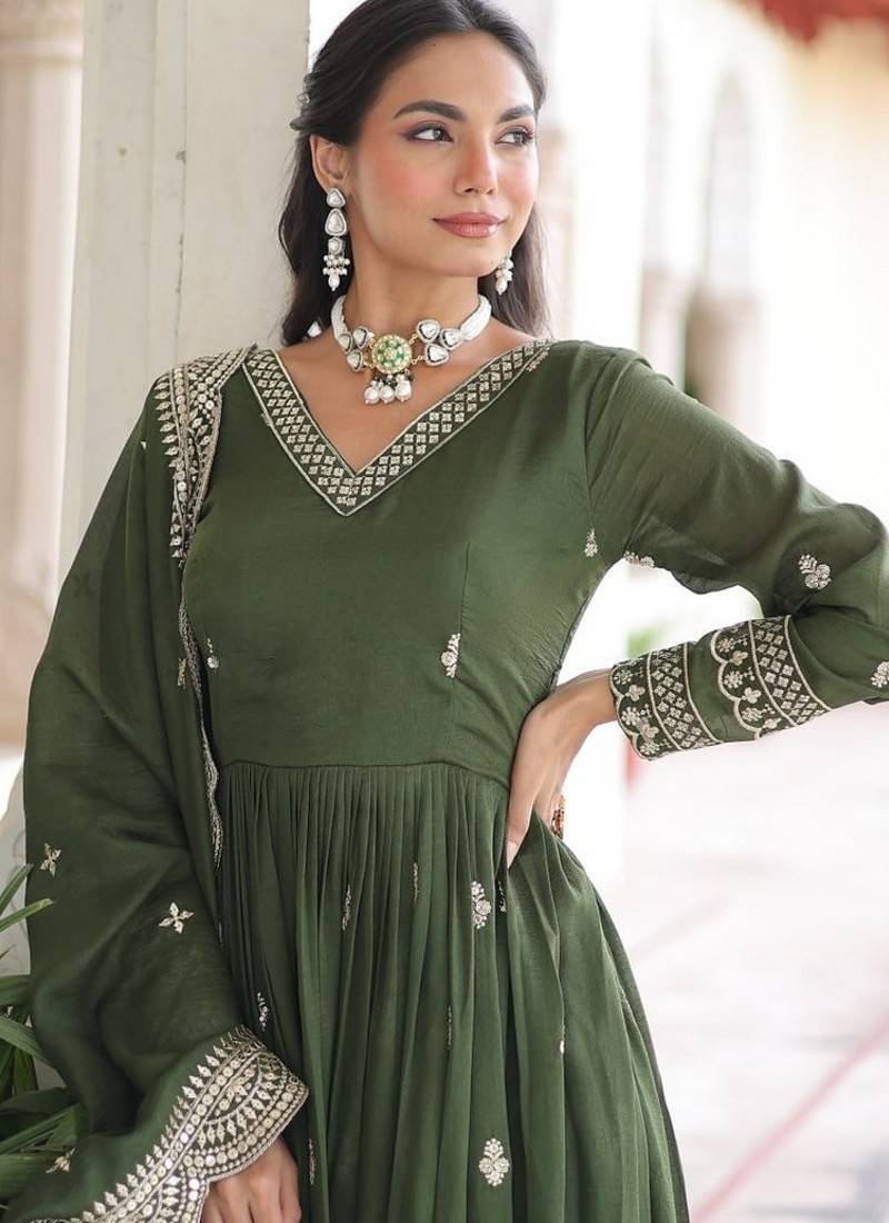 | Product Name | Dark Green Zari & Sequins Embroidered Work Roman Stitched Kurta Gown & Dupatta | |