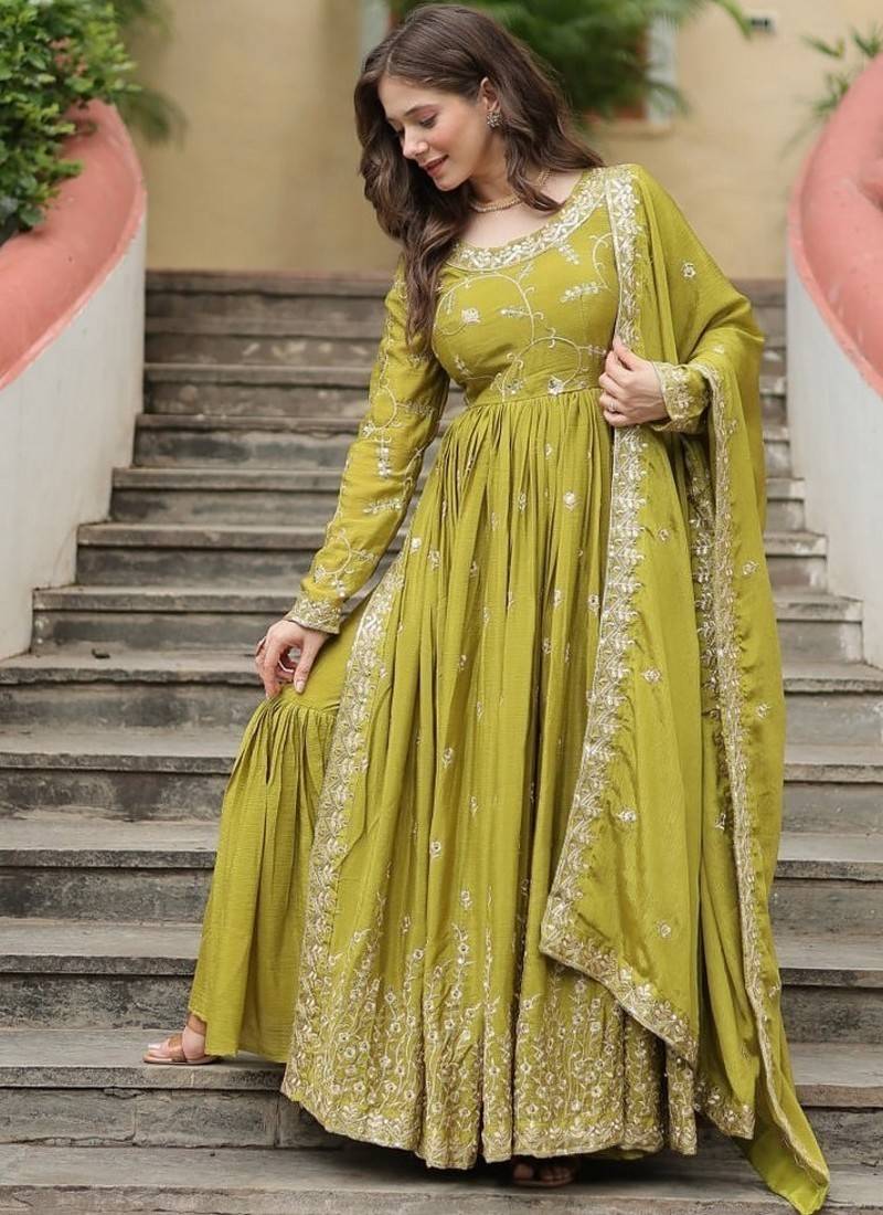 | Product Name | Green Zari & Sequins Embroidered Work Chinon Stitched Kurta Gown | |