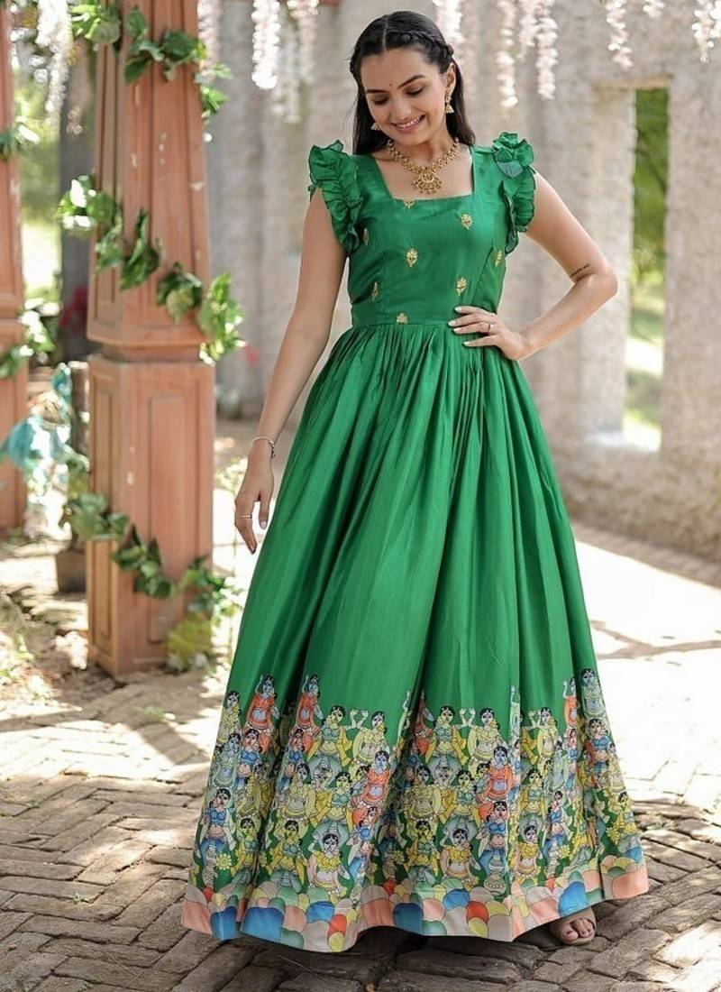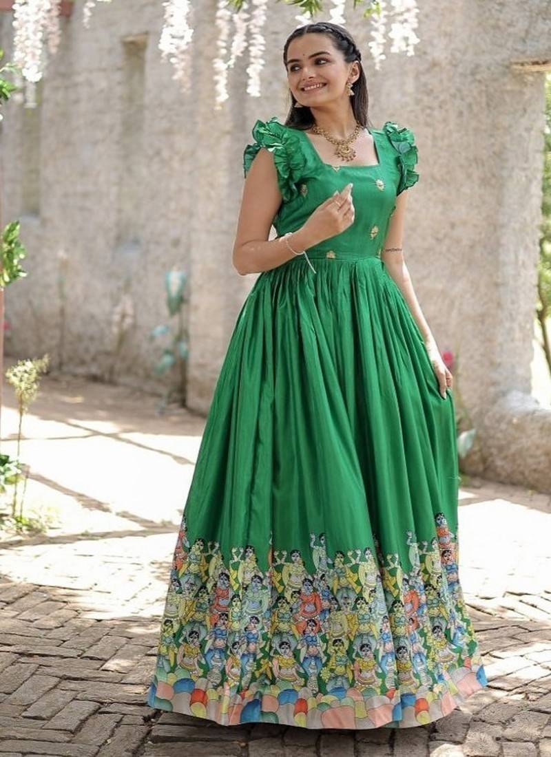 | Product Name | Green Zari & Sequins Embroidered Dola Silk Gown | |