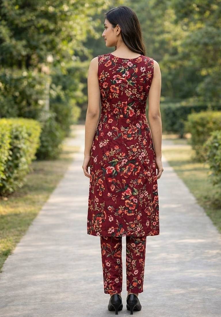 | Product Name | Maroon Floral Printed A Line Kurta Pant Set For Women | |