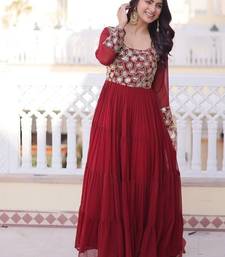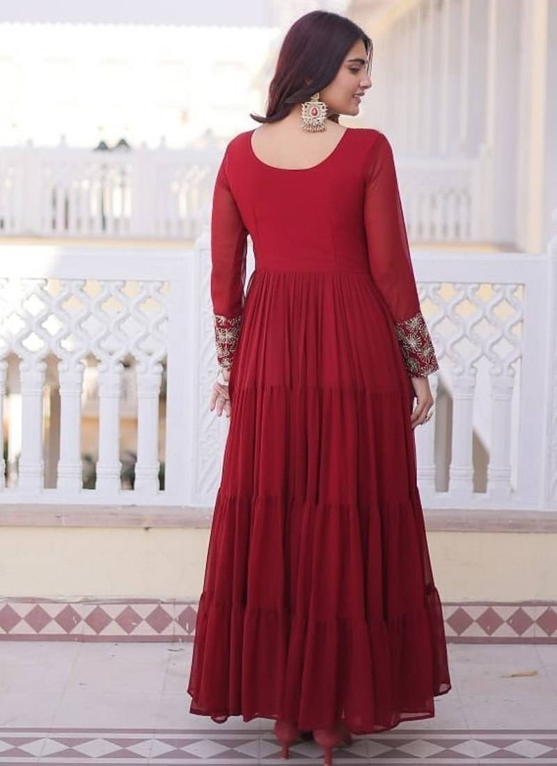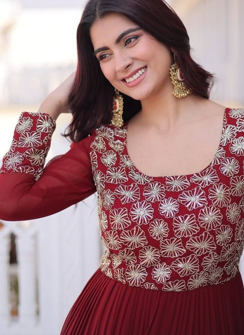 Maroon zari & sequins embroidered work georgette stitched kurta gown