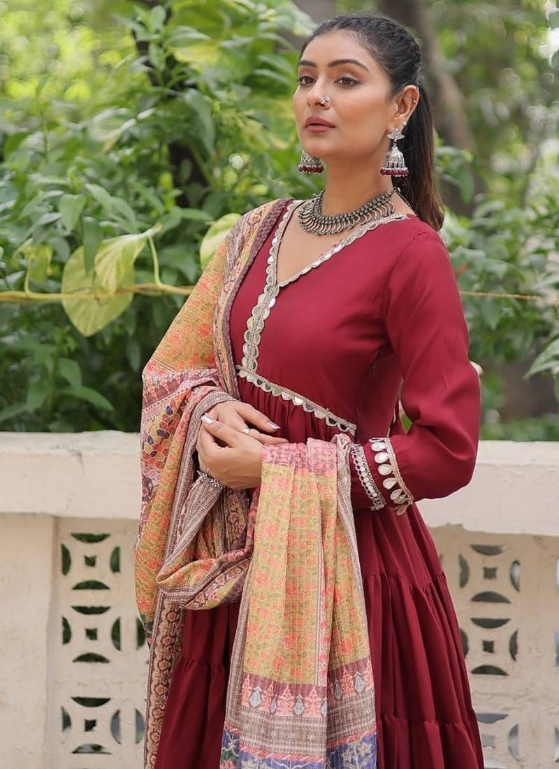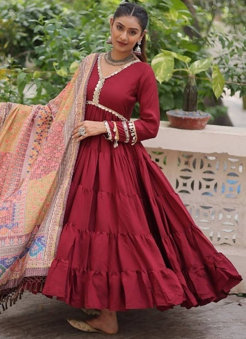 | Product Name | Maroon Zari & Sequins Embroidered Work Roman Stitched Kurta Gown & Dupatta | |