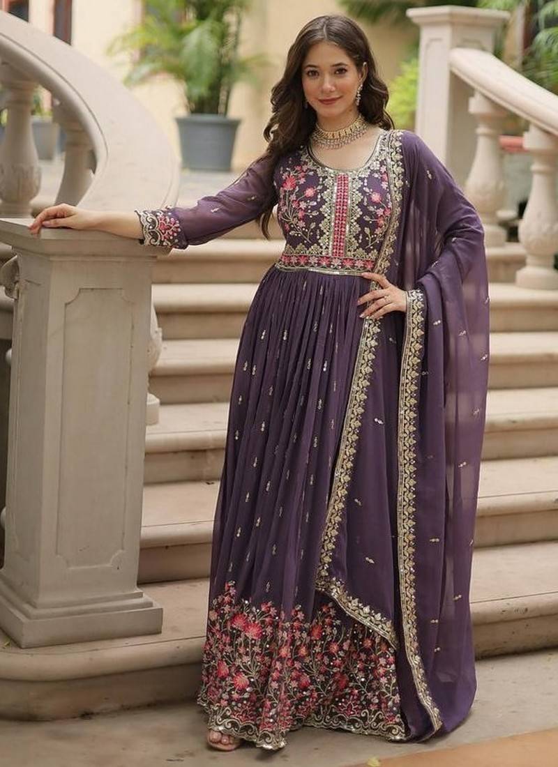 Onion zari & sequins embroidered georgette kurta bottom & dupatta stitched