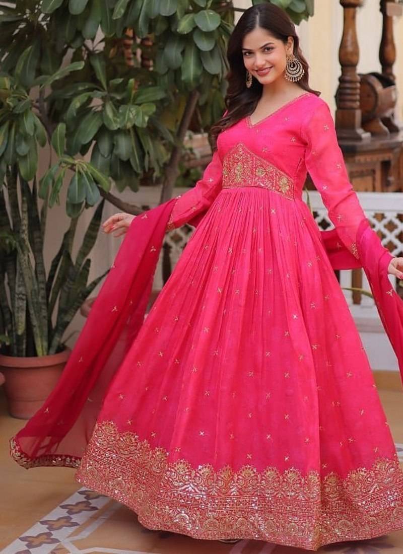 | Product Name | Pink Zari & Sequins Embroidered Work Stitched Gown With Dupatta Set | |