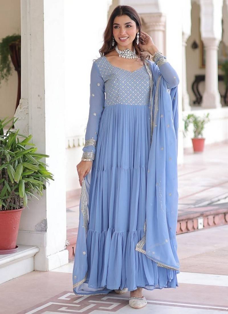 | • | Kameez | : | Color- Light Blue / Fabric- Faux Georgette |