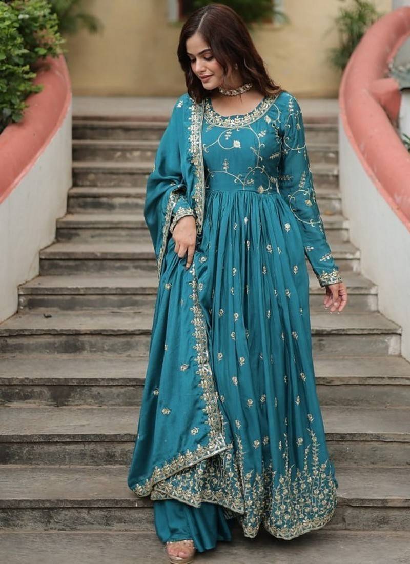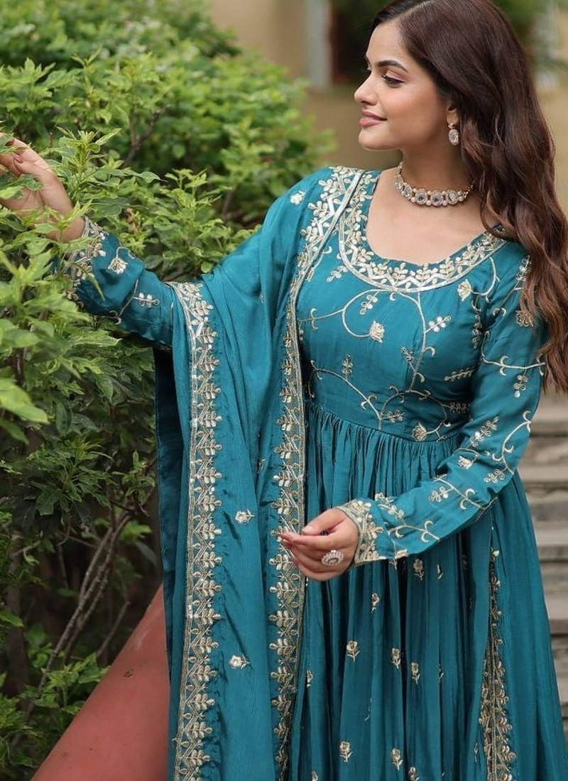 | Product Name | Teal Zari & Sequins Embroidered Chinon Gown | |
