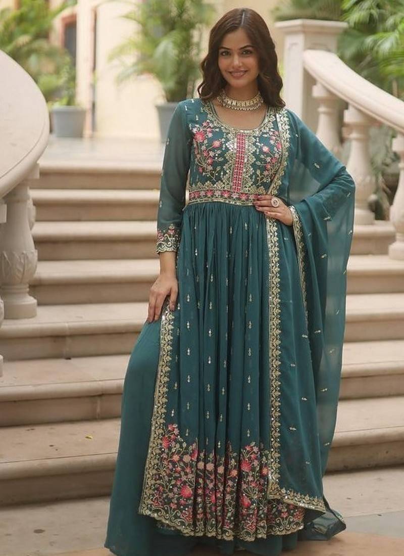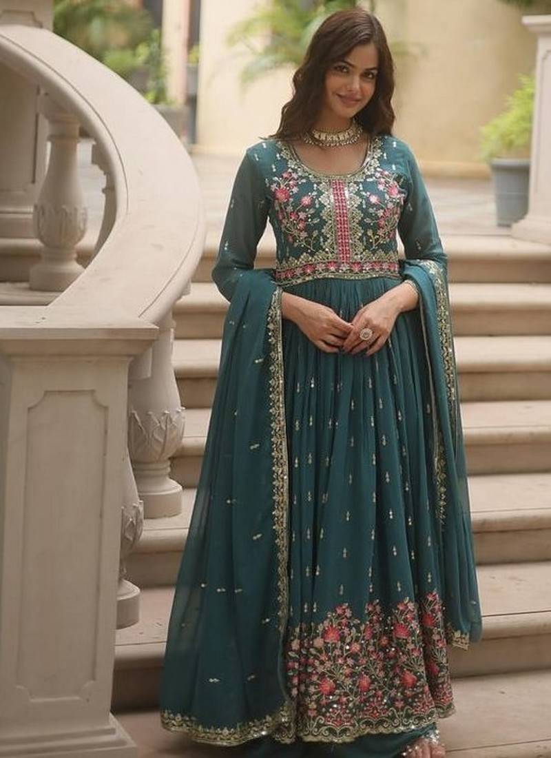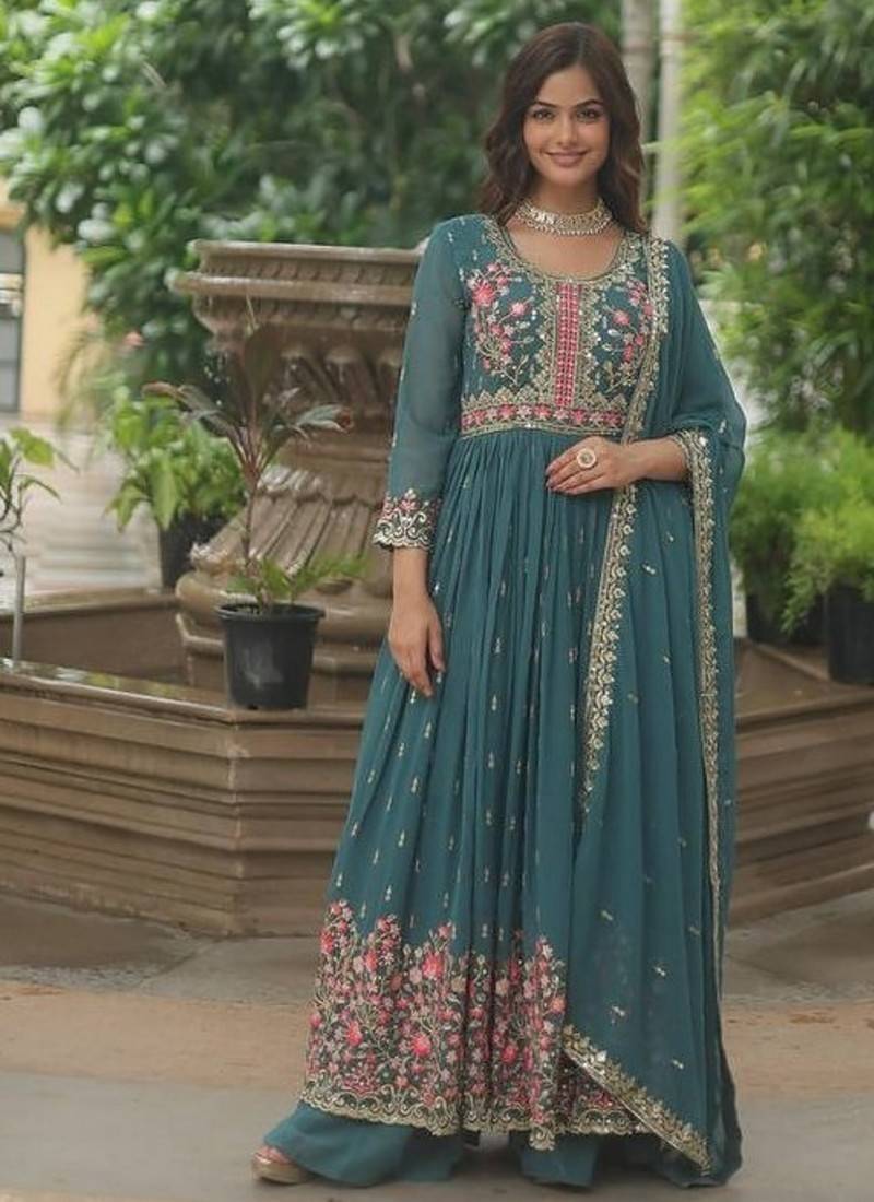 | • | Kameez | : | Color- Teal / Fabric- Faux Georgette |