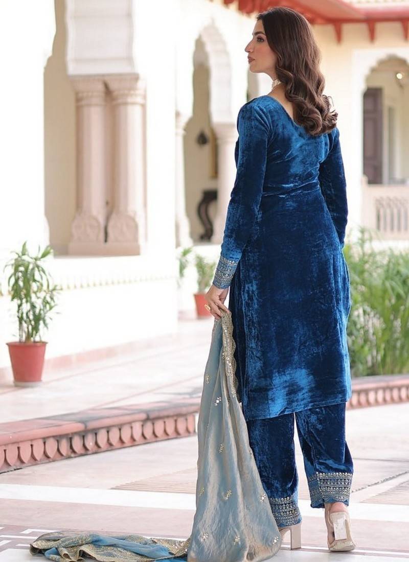 | • | Kameez | : | Color- Teal Blue / Fabric- Velvet |