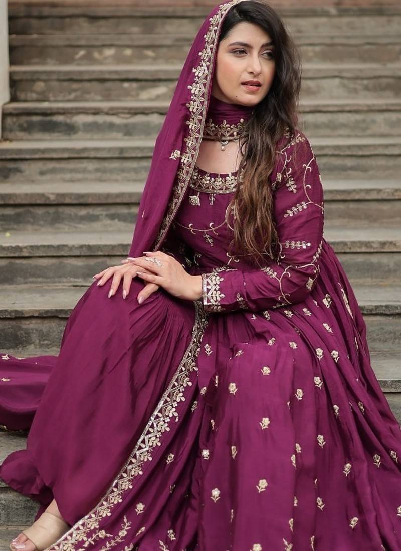 | Product Name | Wine Zari & Sequins Embroidered Chinon Gown | |