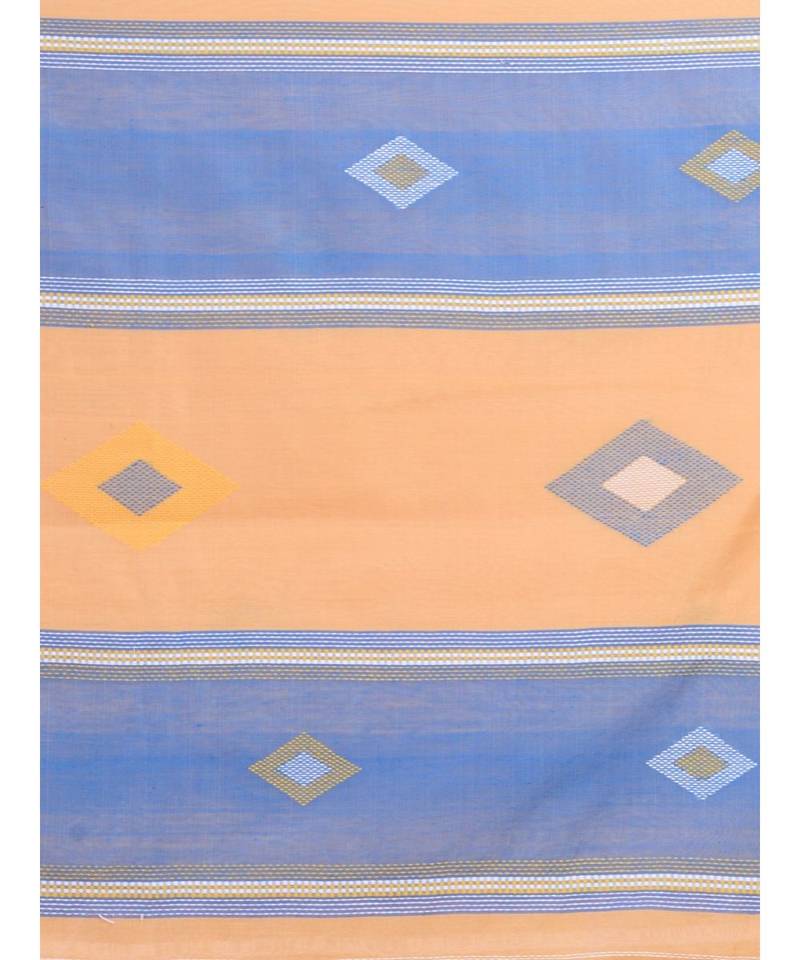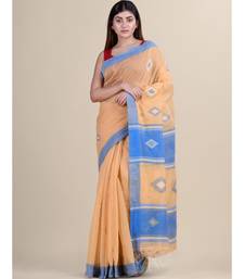 Beige & blue cotton silk hand woven tant jamdani katha stitch handloom saree