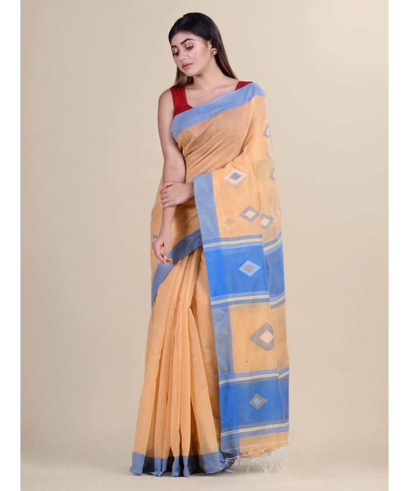 | Product Name | Beige & Blue Cotton Silk Hand Woven Tant Jamdani Katha Stitch Handloom Saree | |