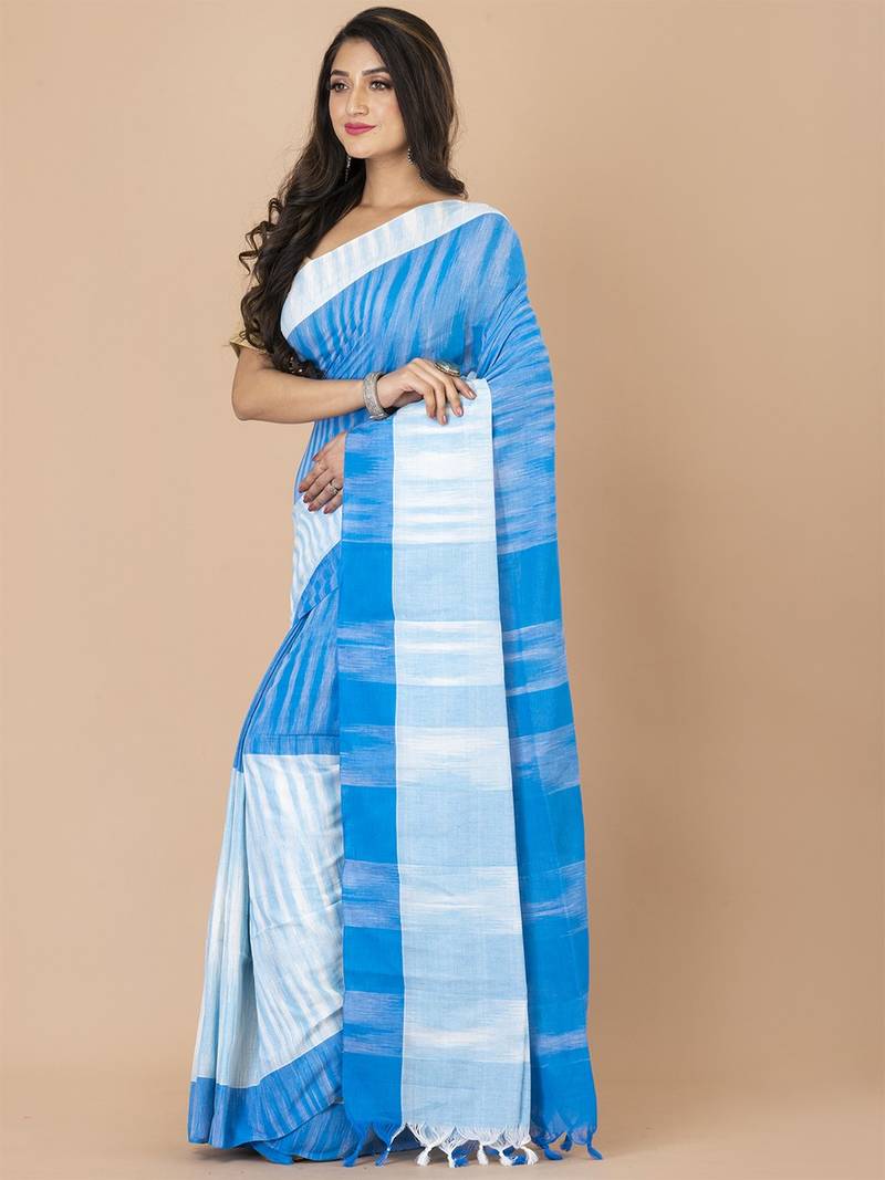 | Product Name | Sky Blue & White Cotton Bengal Handloom Sarees With Blouse | |