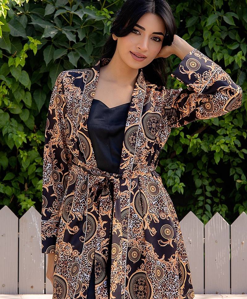 | Product Name | Black Printed Satin Top Shorts Shrug | |