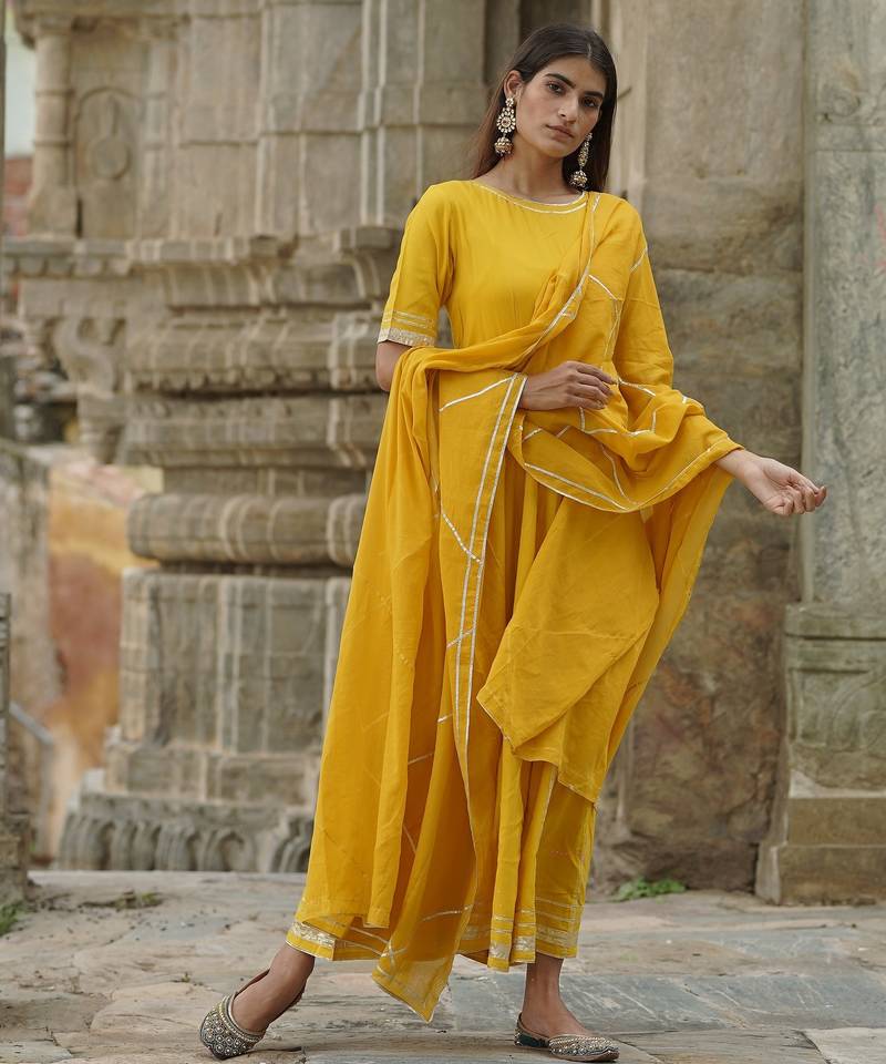 Product Name Ruhaaniyat Solid Yellow Anarkali Kurta With Dupatta (Set Of 2)