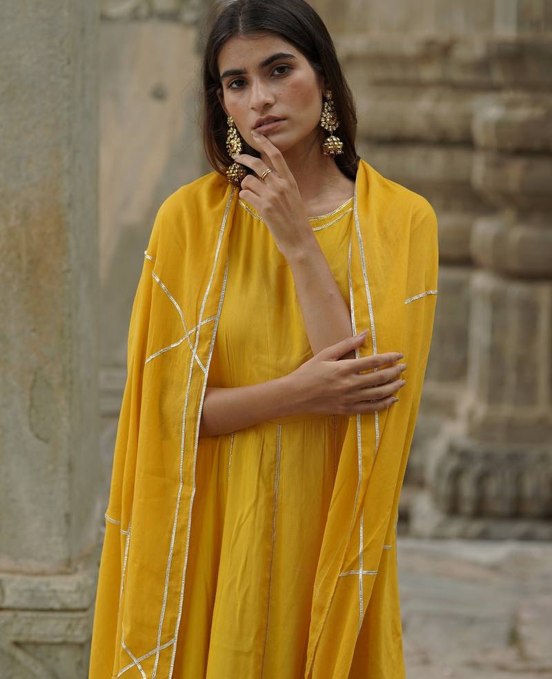 Ruhaaniyat solid yellow anarkali kurta with dupatta (set of 2)