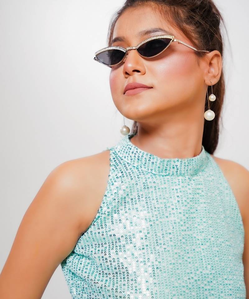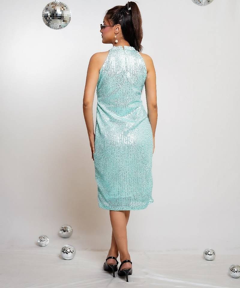 | Product Description | The Frozy Blue Sequin Halter Neck Dress Sparkles With Icy Blue Sequins, Featuring A Flattering Halter Neckline Perfect For Elegant Evenings, Parties, And Standout, Sophisticated Style Moments.