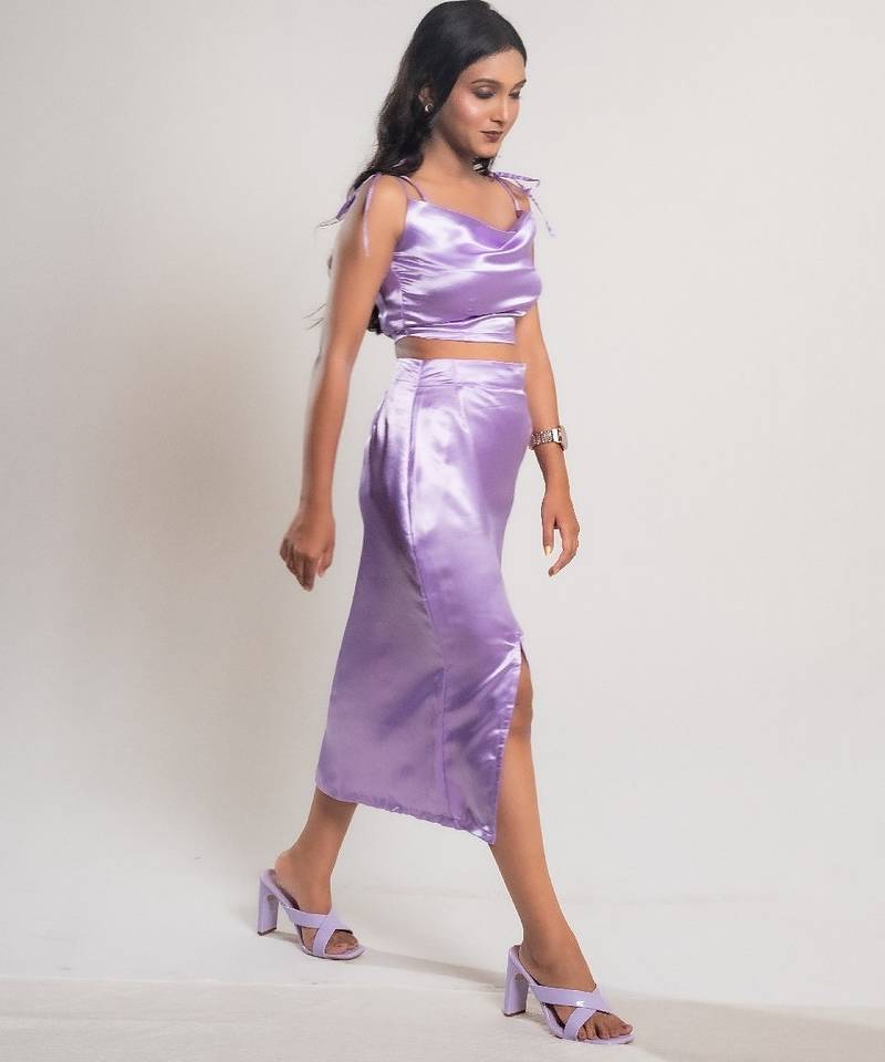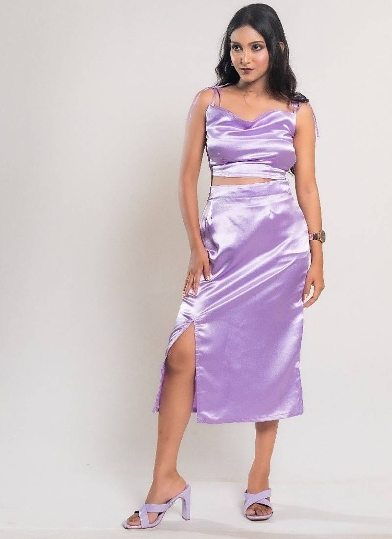| Product Description | The Lavender Satin Ribbon Tie And Slit Co Ord Set Features Soft Satin Fabric, A Flattering Ribbon Tie, And A Stylish Slit—Perfect For Elegant Events, Parties, And Chic Evening Outings. |