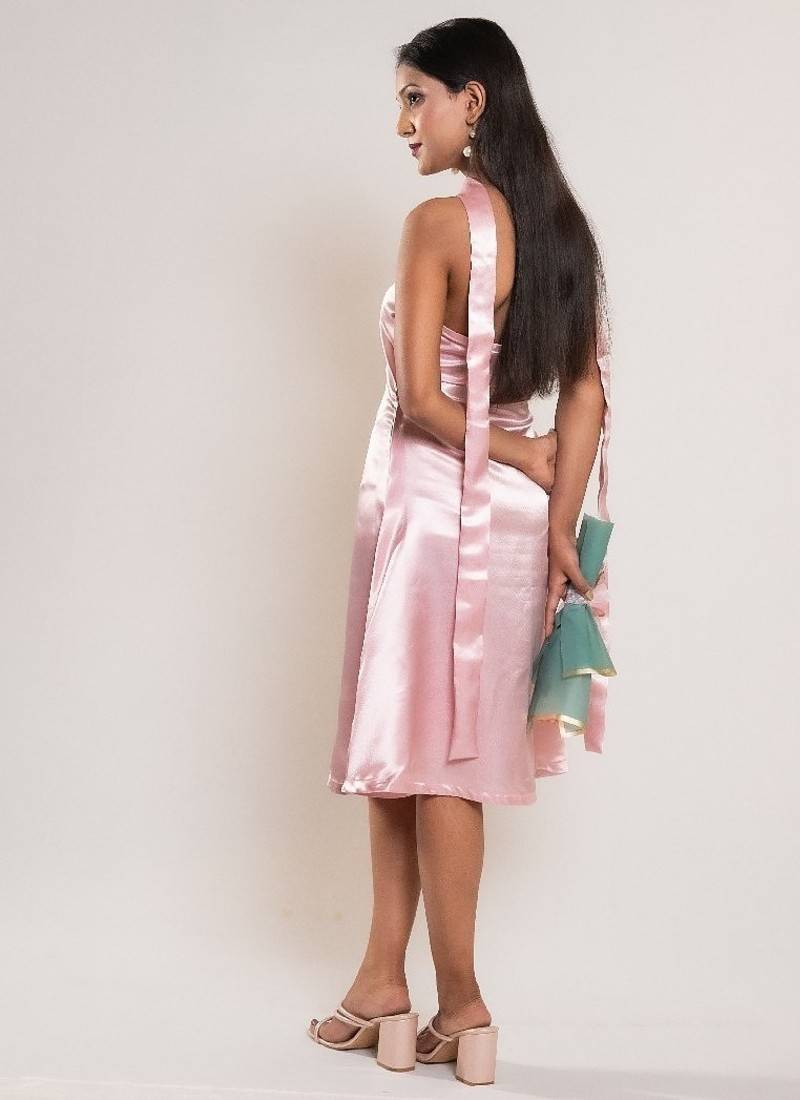 Pastel pink satin frock with stole