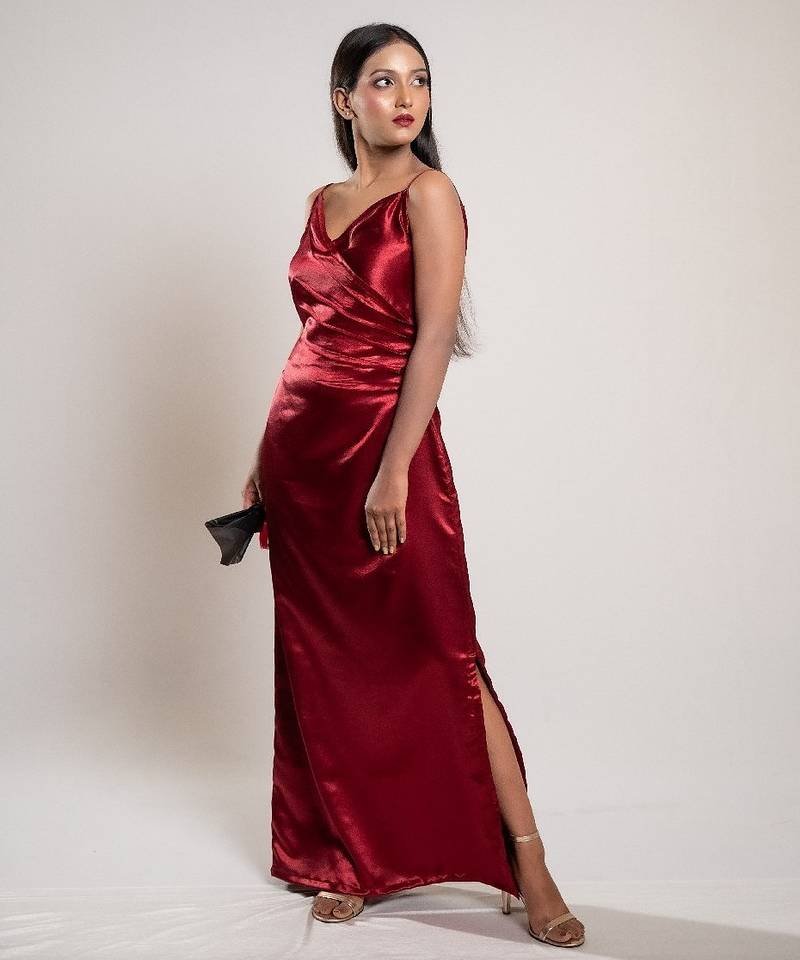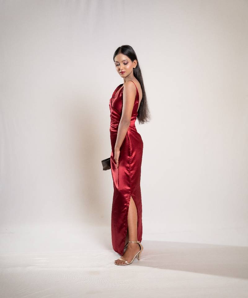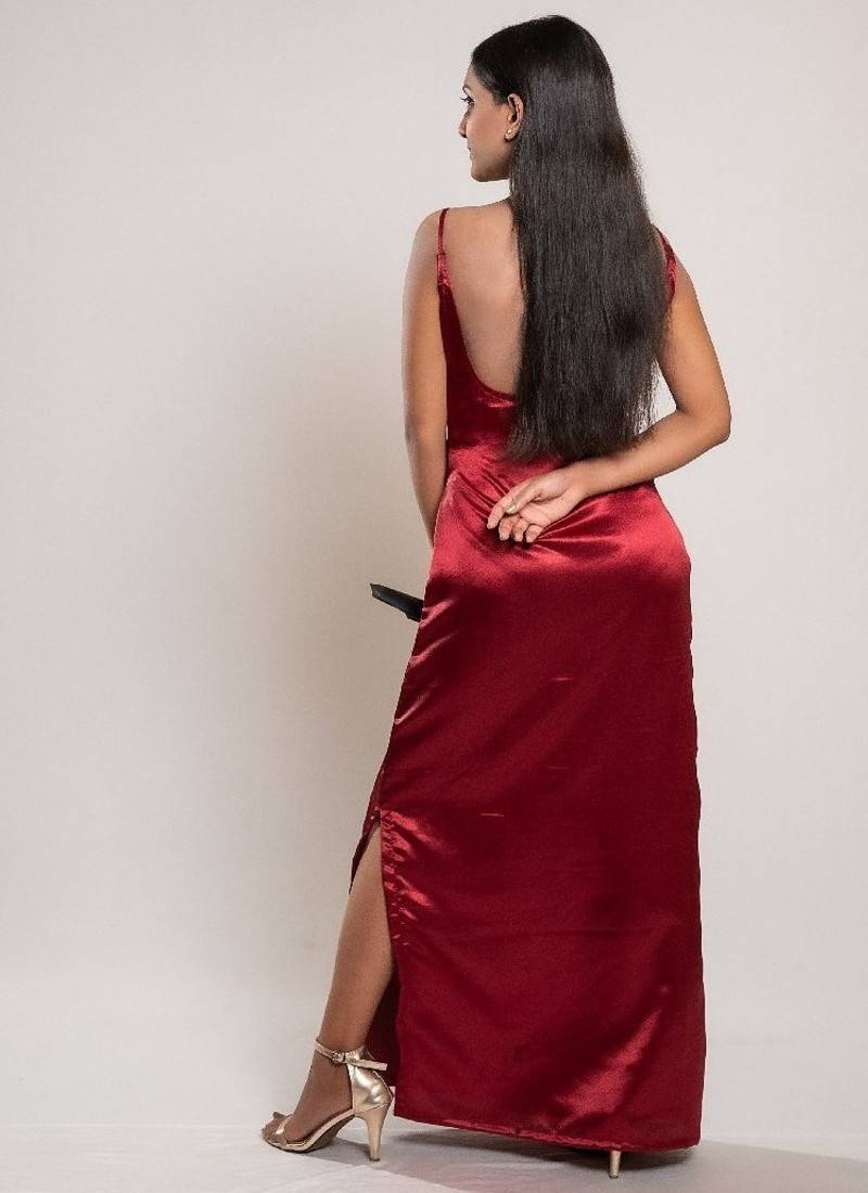 | Product Description | The Red Satin Side Slit Dress Dazzles With Vibrant Red Satin Fabric And A Bold Side Slit, Creating A Striking, Elegant Look Perfect For Formal Events And Glamorous Nights. |