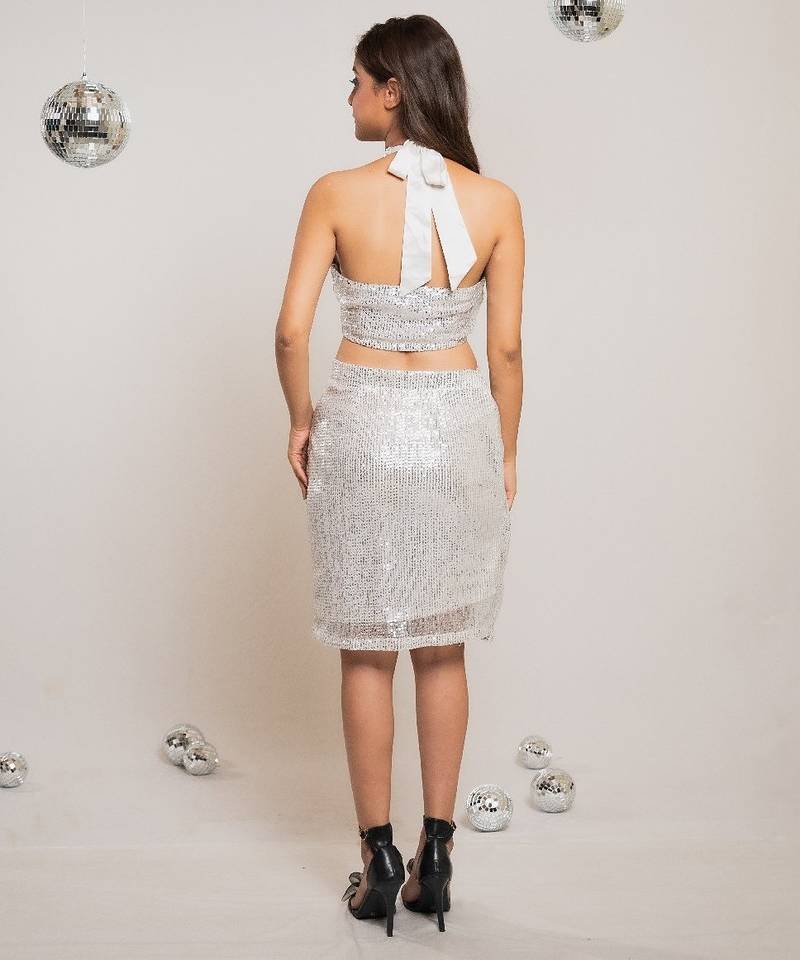 | Product Description | Effortlessly Chic, The Silver Sequin Co Ord Set With Bow Closure Is Designed For Unforgettable Glamour And Grace.