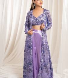 | Product Description | A Graceful Lavender Lilac Indo Western Set Featuring A Sequin Embroidered Top And Smooth Lavender Satin Bottoms. Paired With A Stunning Long Shrug With Full Sleeves Heavily Embroidered In Matching Lavender Sequins Adds A Contemporary Twist—Making This Ensemble Perfect For Stylish Celebrations, Cocktail Evenings, Or Modern Festive Occasions. |