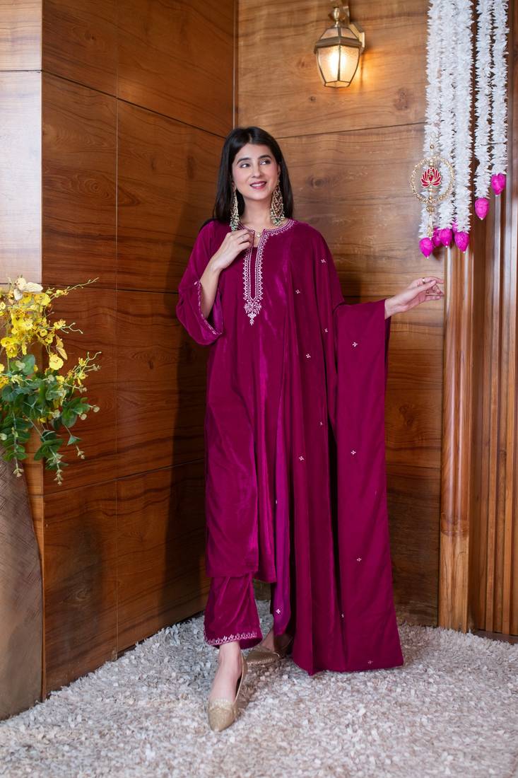 | Product Name | Velvet Magenta Pink Embroidered Kurta Set | |