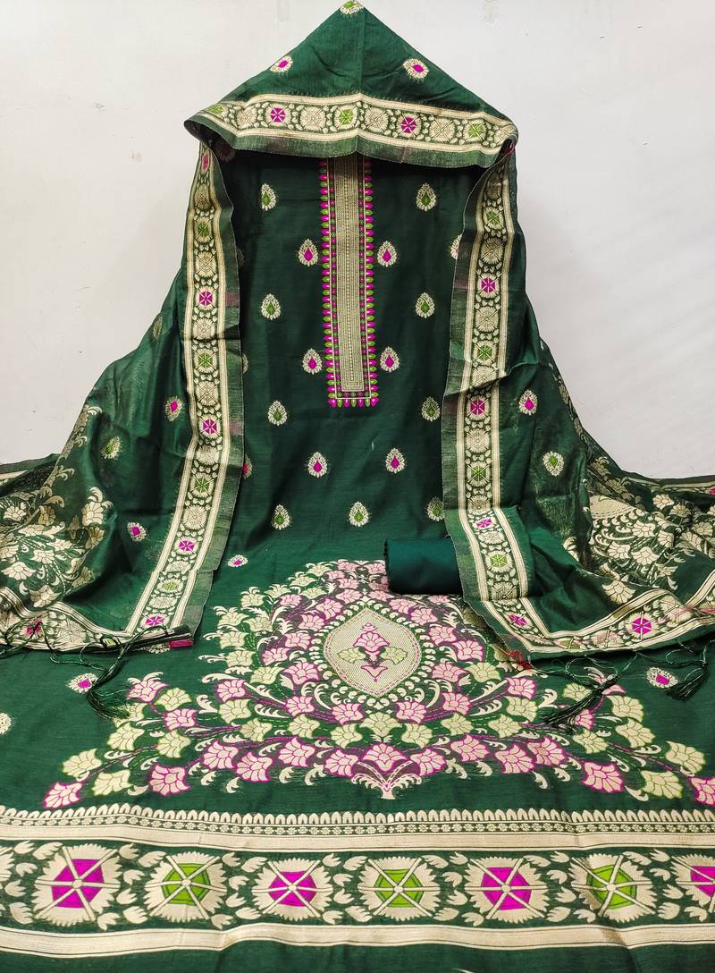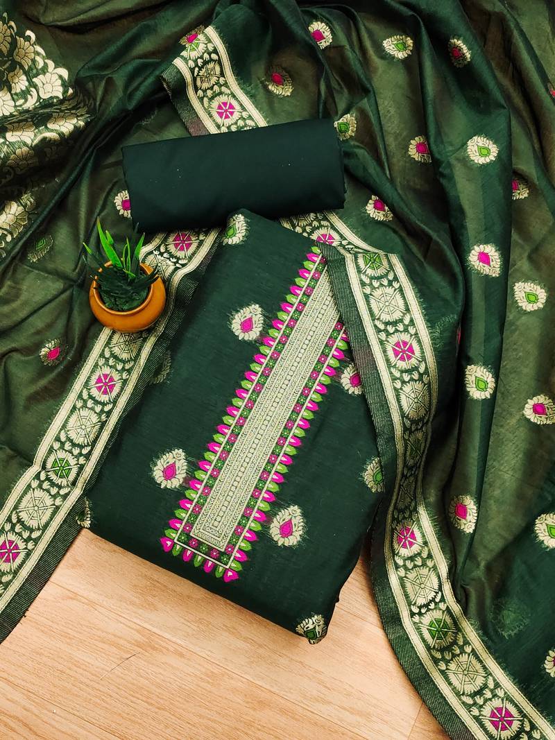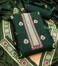 Bottle green chanderi cotton 3 piece dress material unstitched