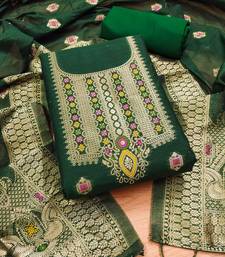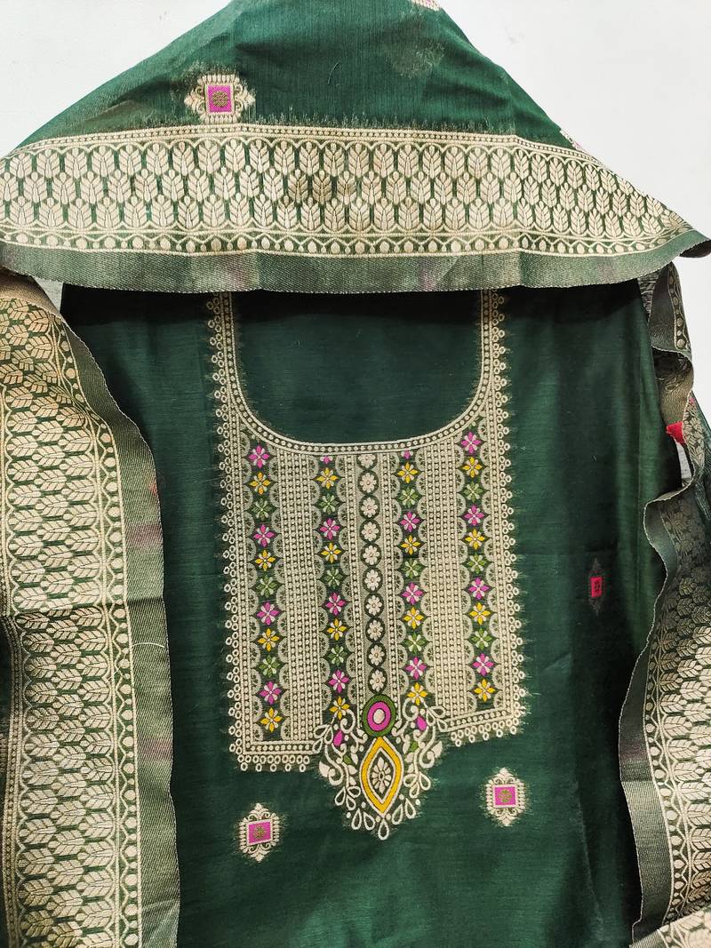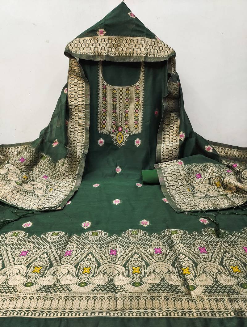 Bottle green chanderi cotton 3 piece dress material unstitched