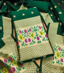 Bottle green soft banarasi silk pure zari woven design dress material unstitched