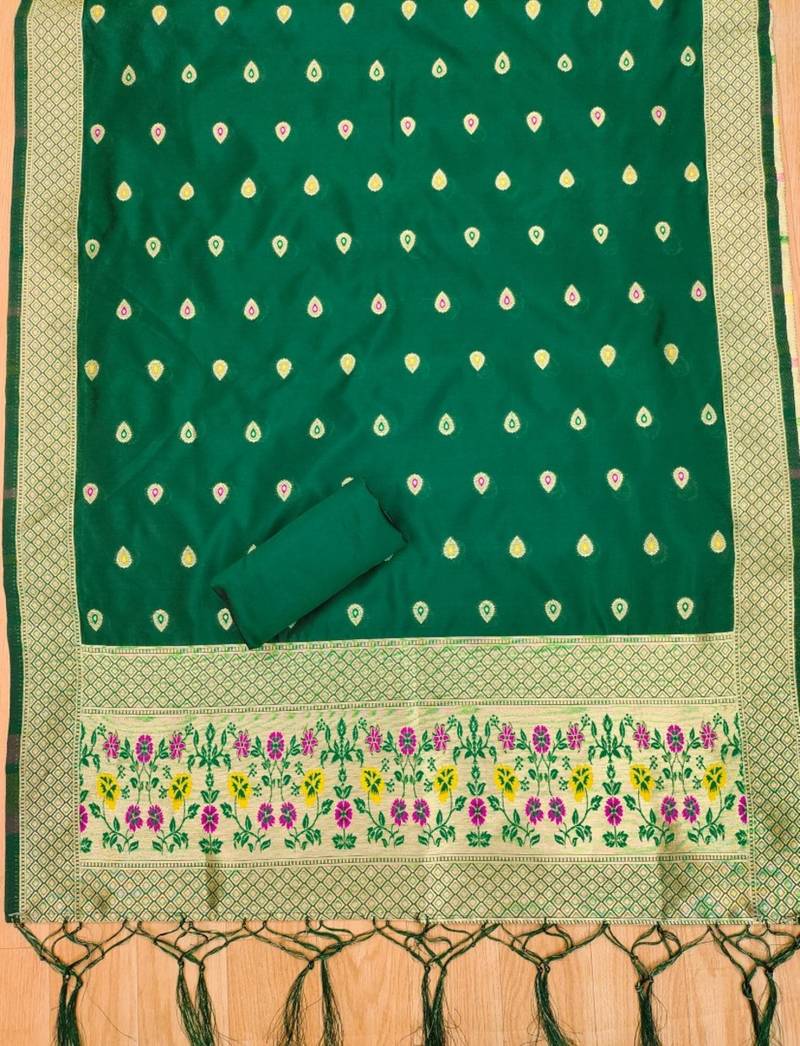 | Product Name | Bottle Green Soft Banarasi Silk Pure Zari Woven Design Dress Material | |
