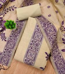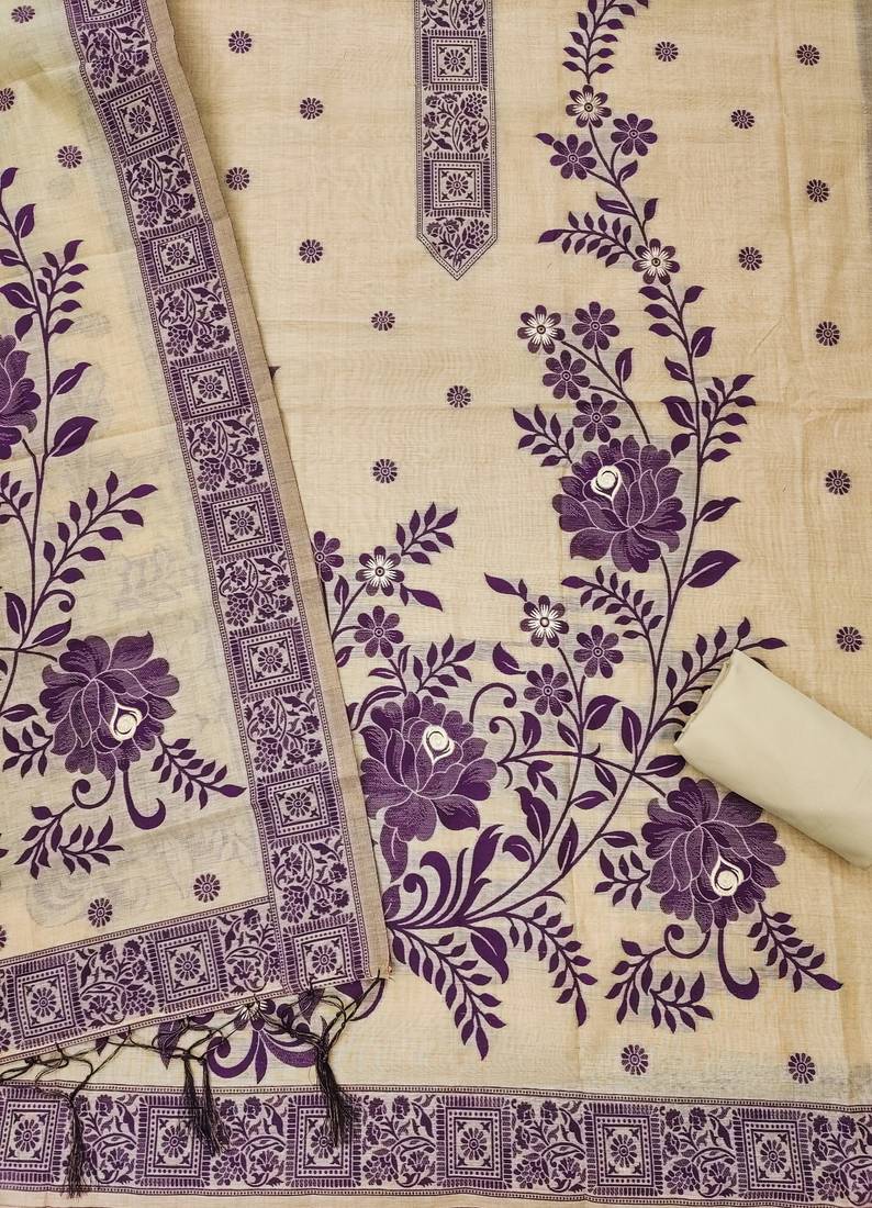 Cream jamdani banarasi weaving dress material 3pcs for women unstitched