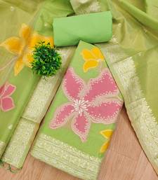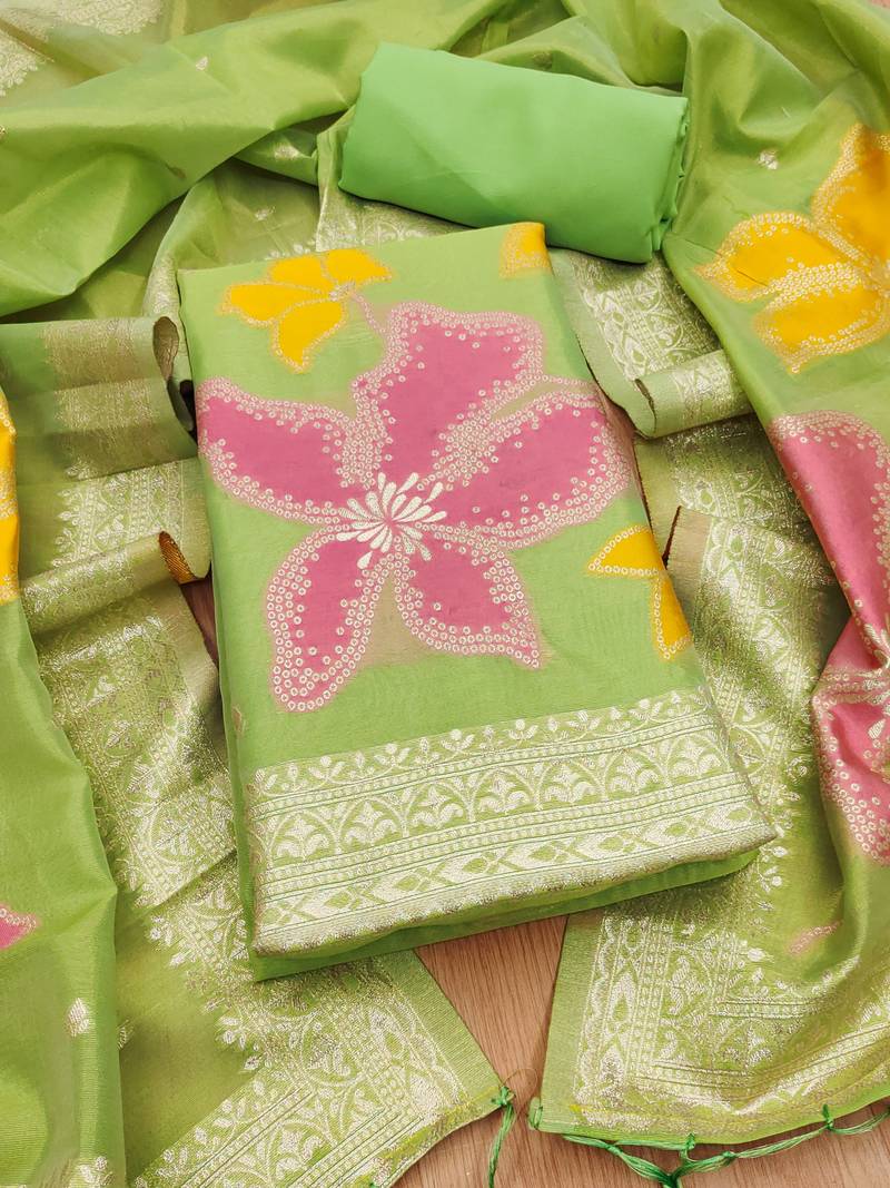 Green zari weaving dress material for women unstitched