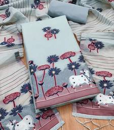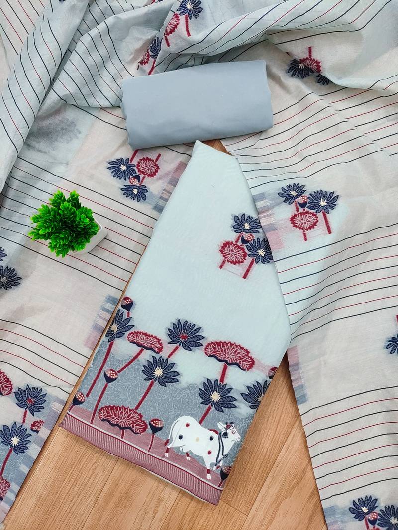 Grey muga cotton jamdani weaving 3-piece dress material set unstitched