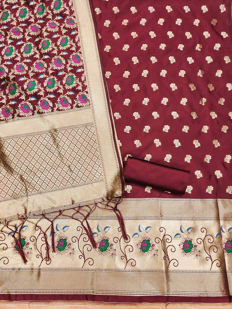 | Product Name | Maroon Soft Banarasi Silk Pure Zari Woven Design Dress Material | |