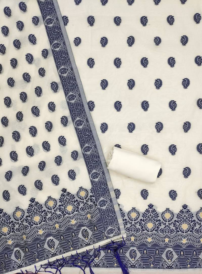 Navy blue resham weaving chanderi cotton 3-piece dress material unstitched