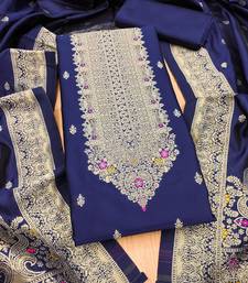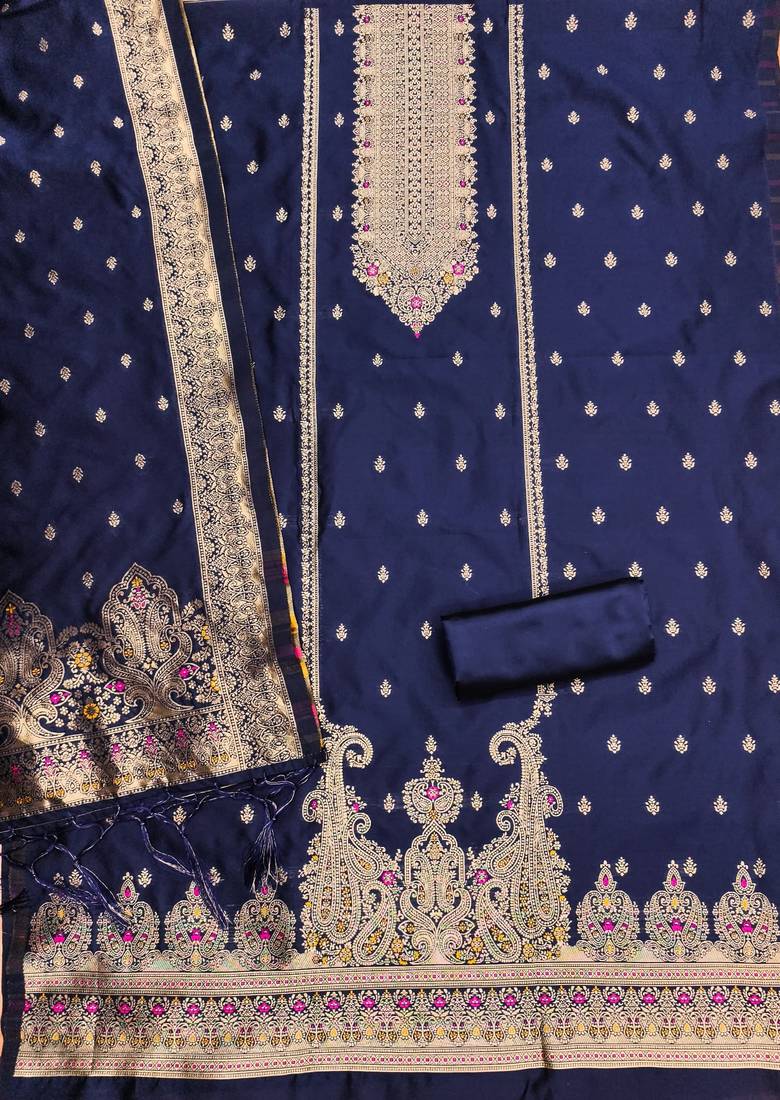 Navy blue soft banarasi silk pure zari woven design dress material unstitched