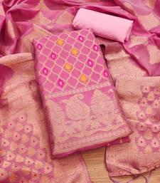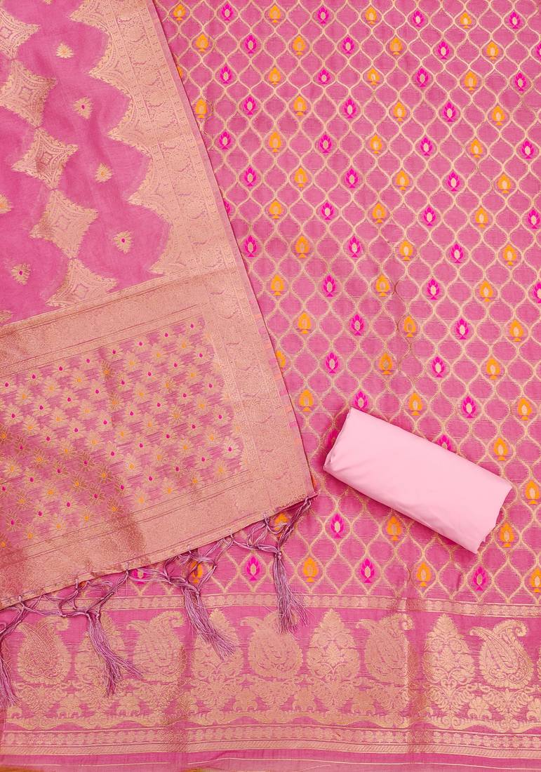 Unstitched pink chanderi cotton 3-piece set with zari work