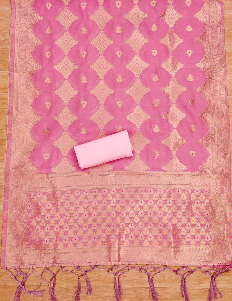 | Product Name | Unstitched Pink Chanderi Cotton 3 Piece Set With Zari Work | |