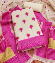 Pink chanderi cotton 3-piece resham weaving dress material unstitched