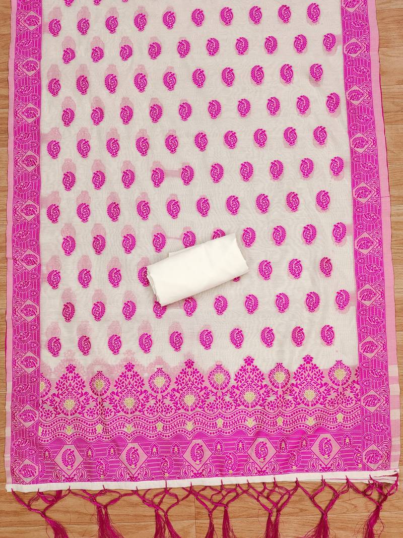 Pink resham weaving chanderi cotton 3-piece dress material unstitched