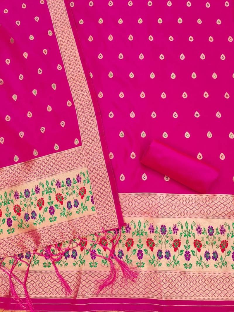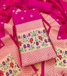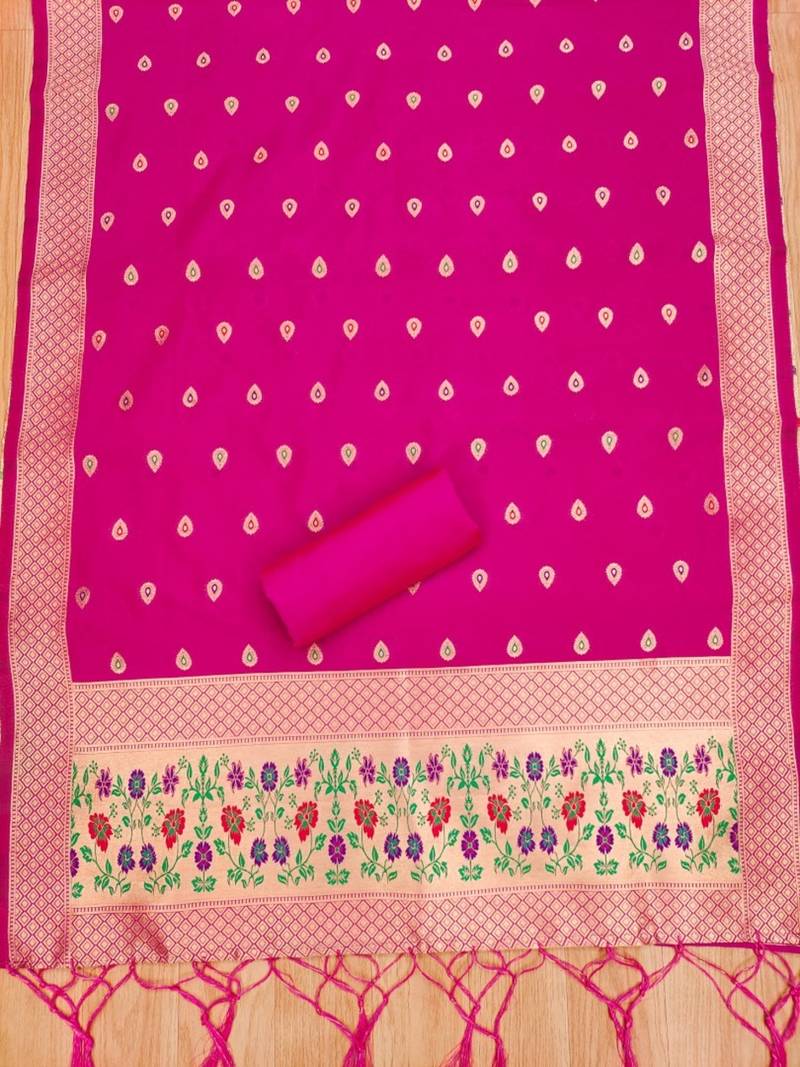 Pink soft banarasi silk pure zari woven design dress material unstitched